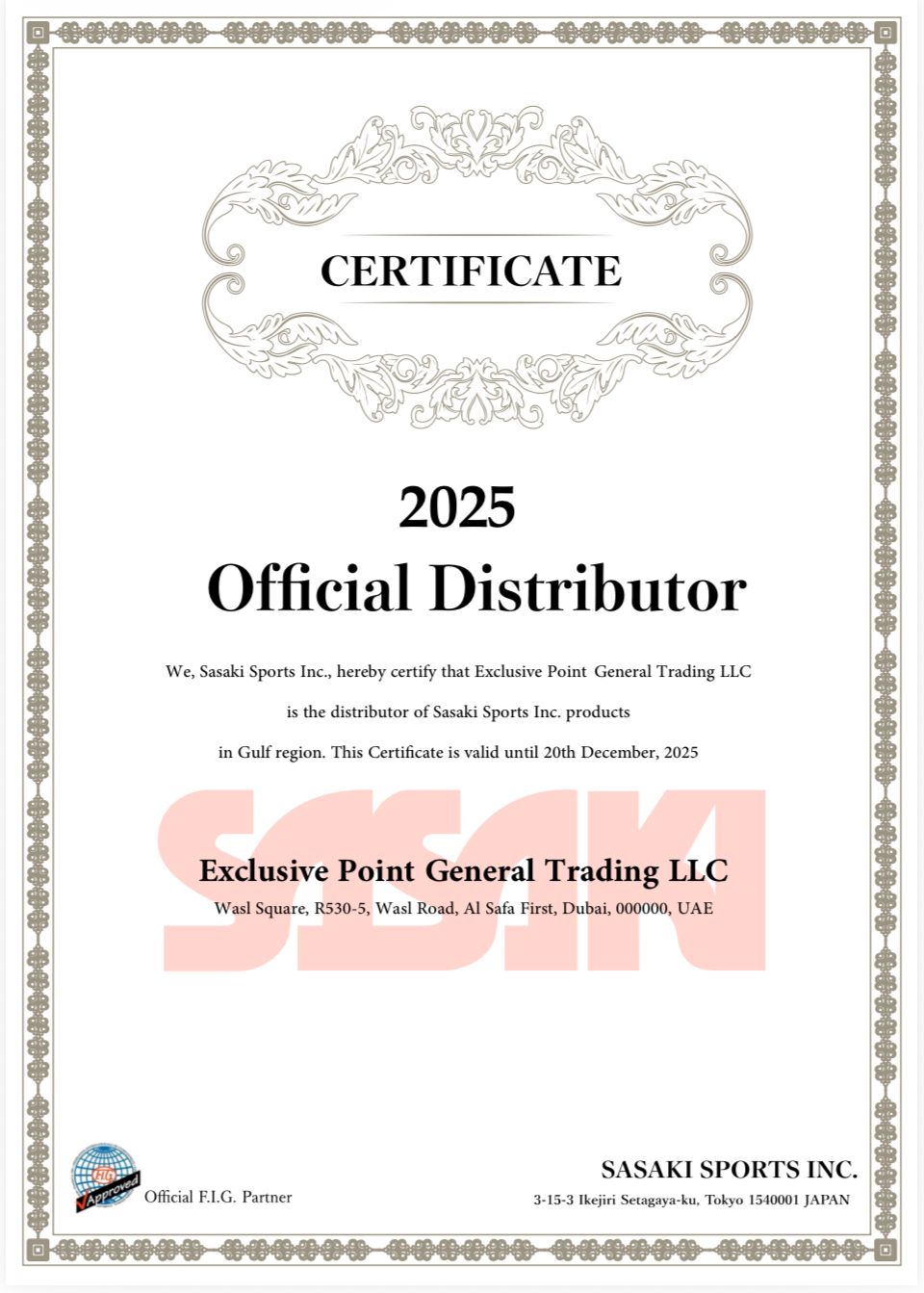 SASAKI OFFICIAL DISTRIBUTORS CERTIFICATES