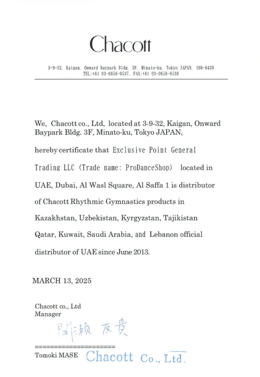 CHACOTT OFFICIAL DISTRIBUTORS CERTIFICATES